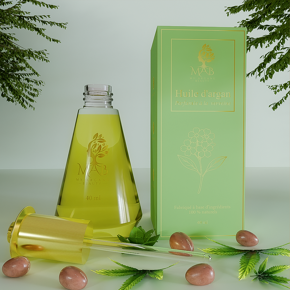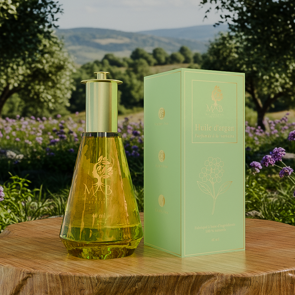 L’Argan parfumé Verveine, un soin énergisant où la pureté de l’argan rencontre la fraîcheur lumineuse de la verveine.